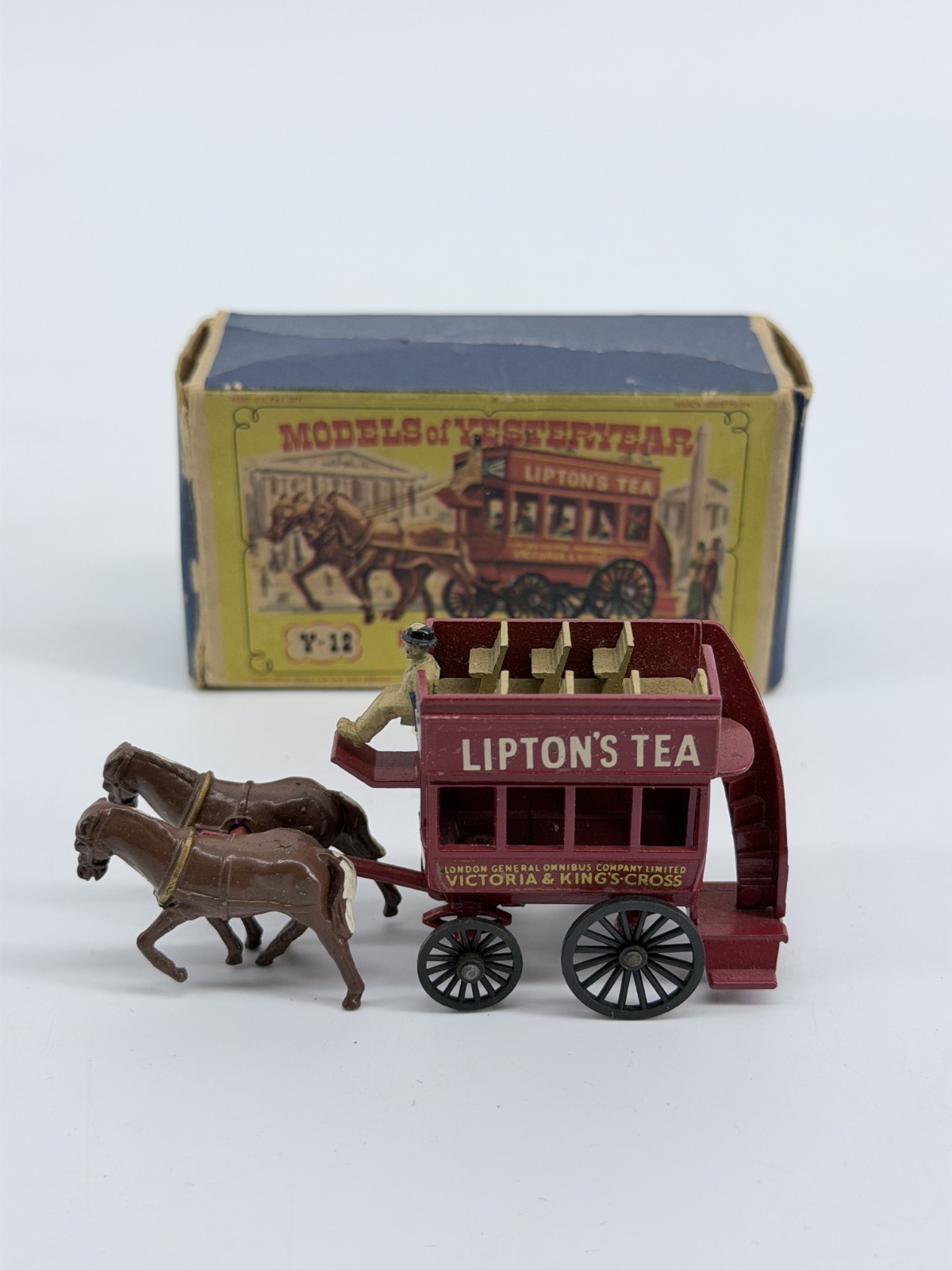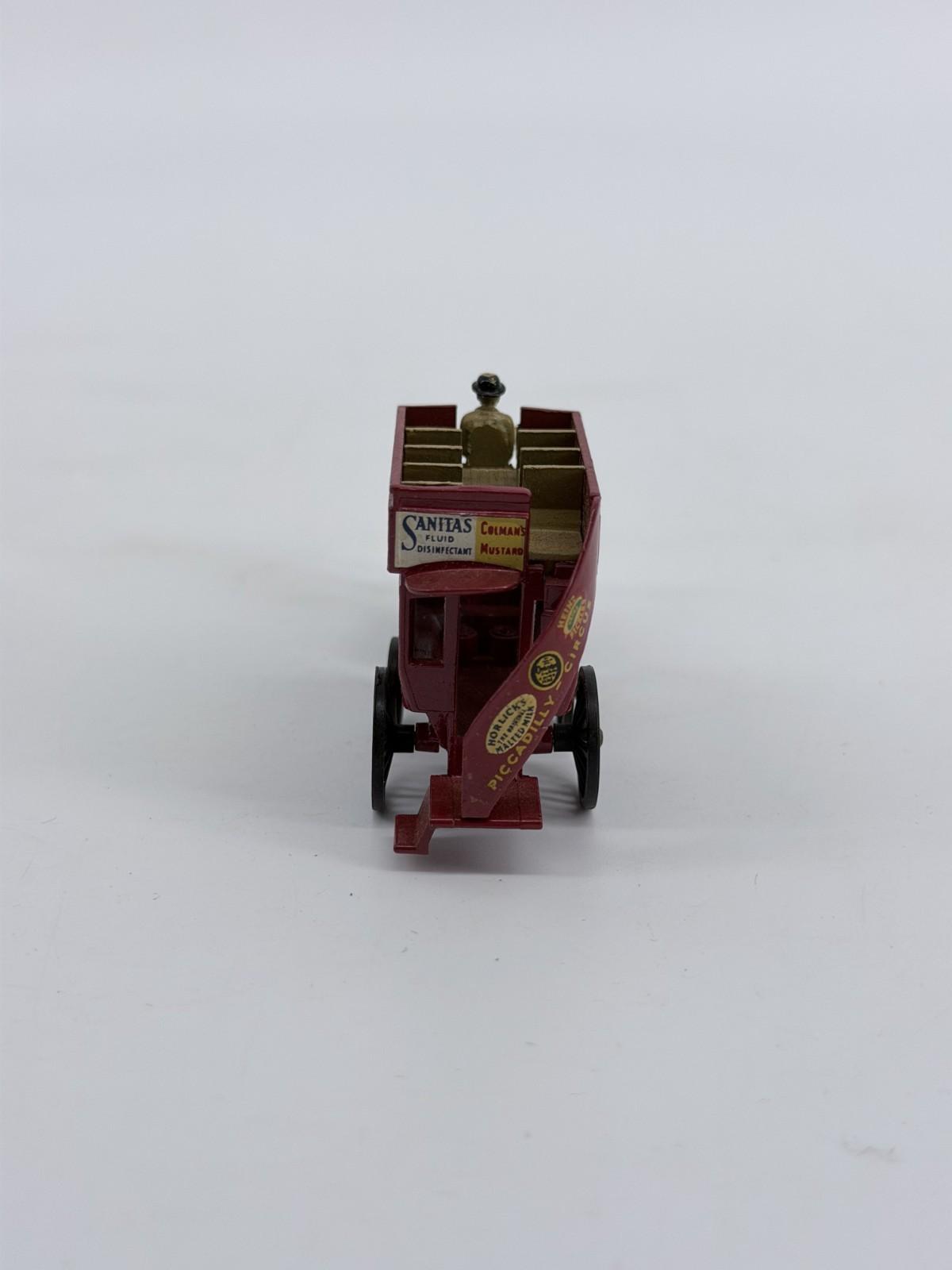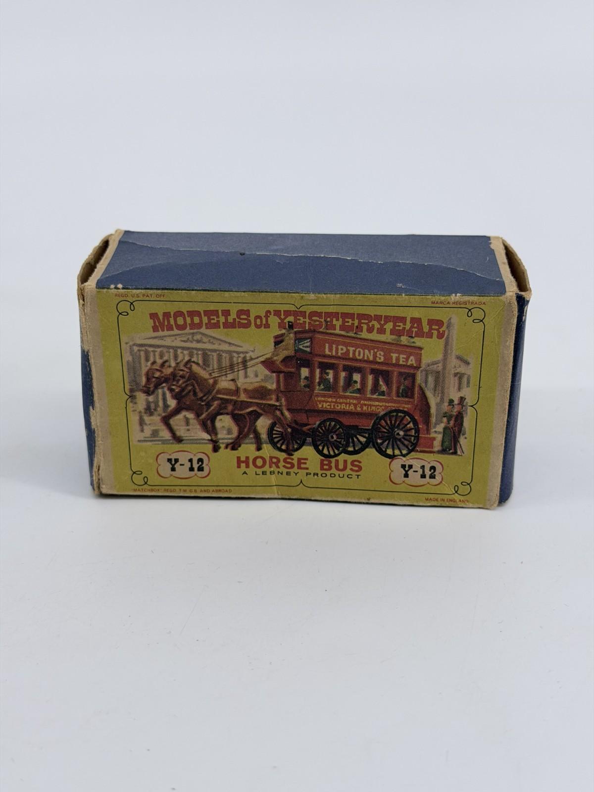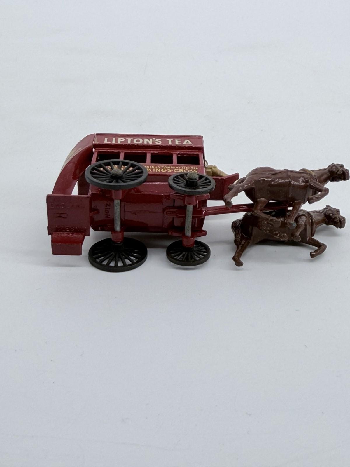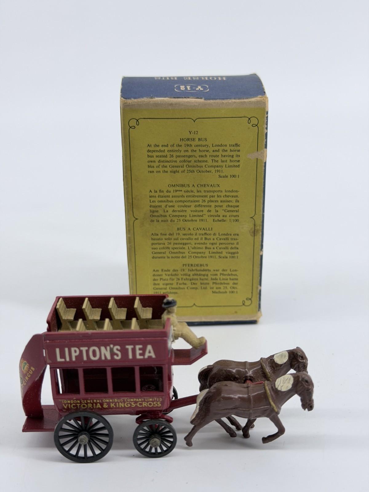 The 1959 Lesney Matchbox Models of YesterYear Lipton's Tea Horse Bus Y12 is a vintage die-cast toy vehicle from the popular Matchbox series. This horse bus model features a multi-color design and is part of the Matchbox Collectibles theme. Made by Lesney in 1959, this toy is recommended for ages 3 and up and is a must-have for collectors of vintage die-cast vehicles. The Y12 Horse Bus model captures the charm and nostalgia of classic vehicles from the past, making it a cherished addition to any toy or die-cast vehicle collection.