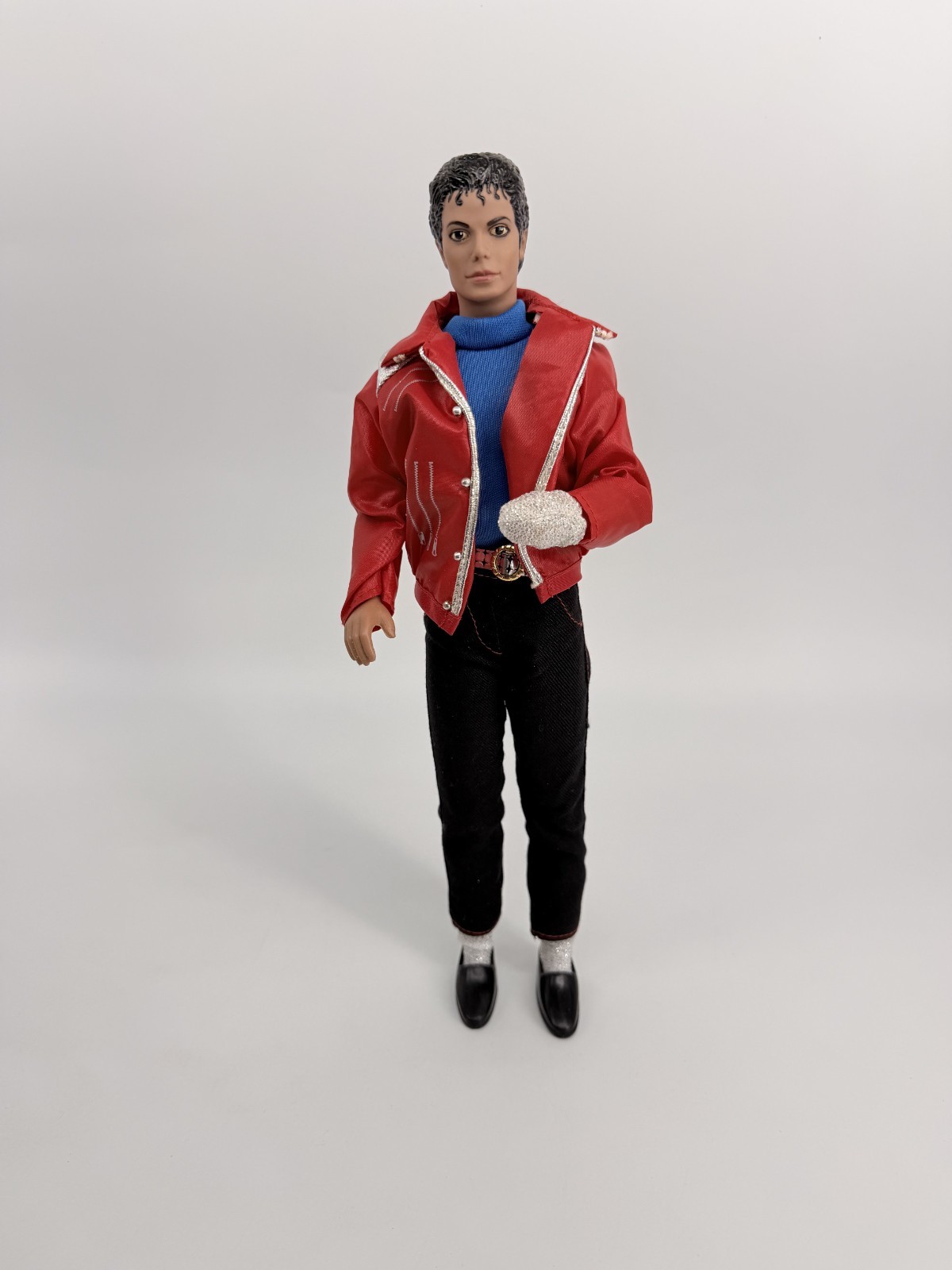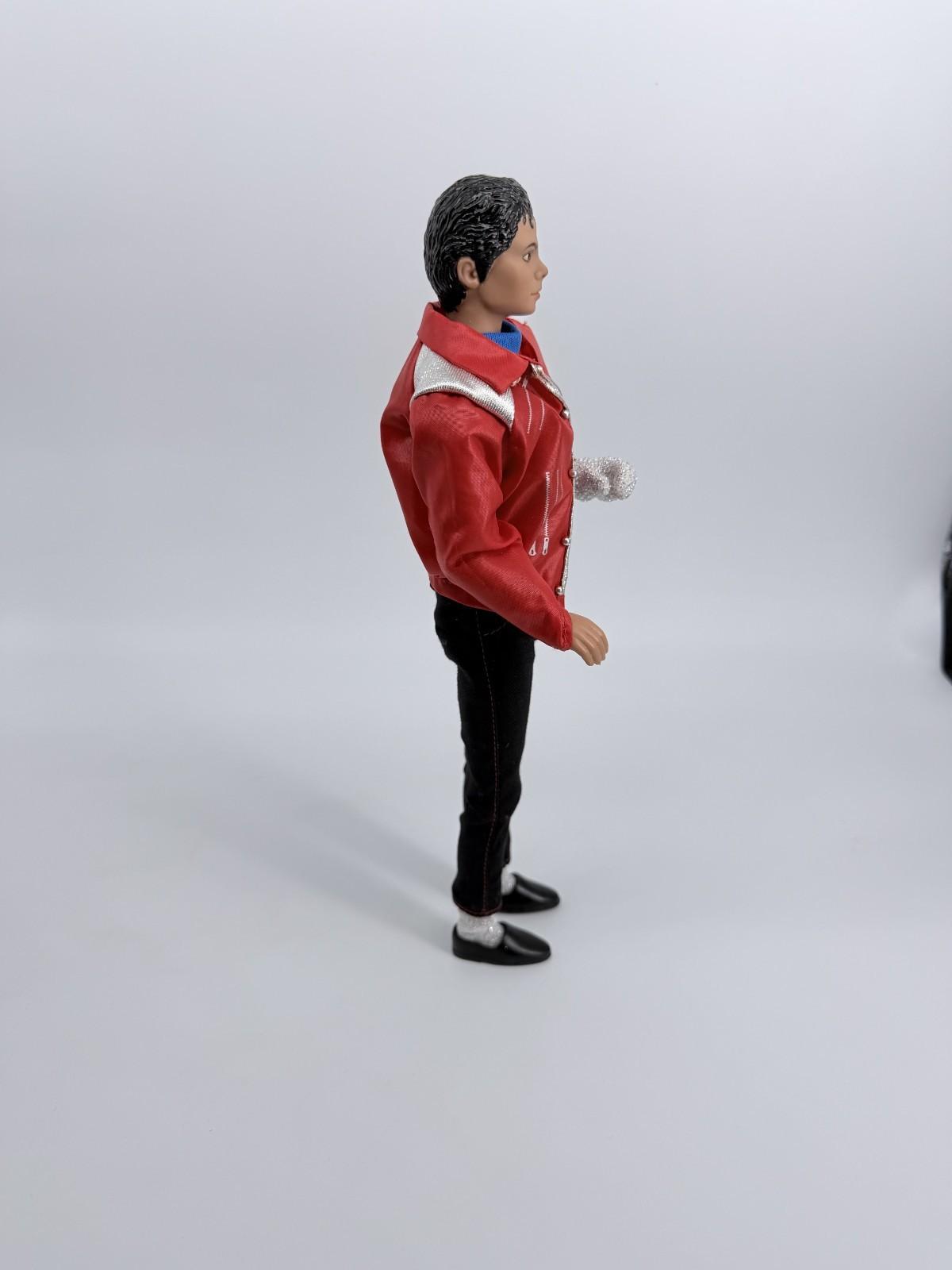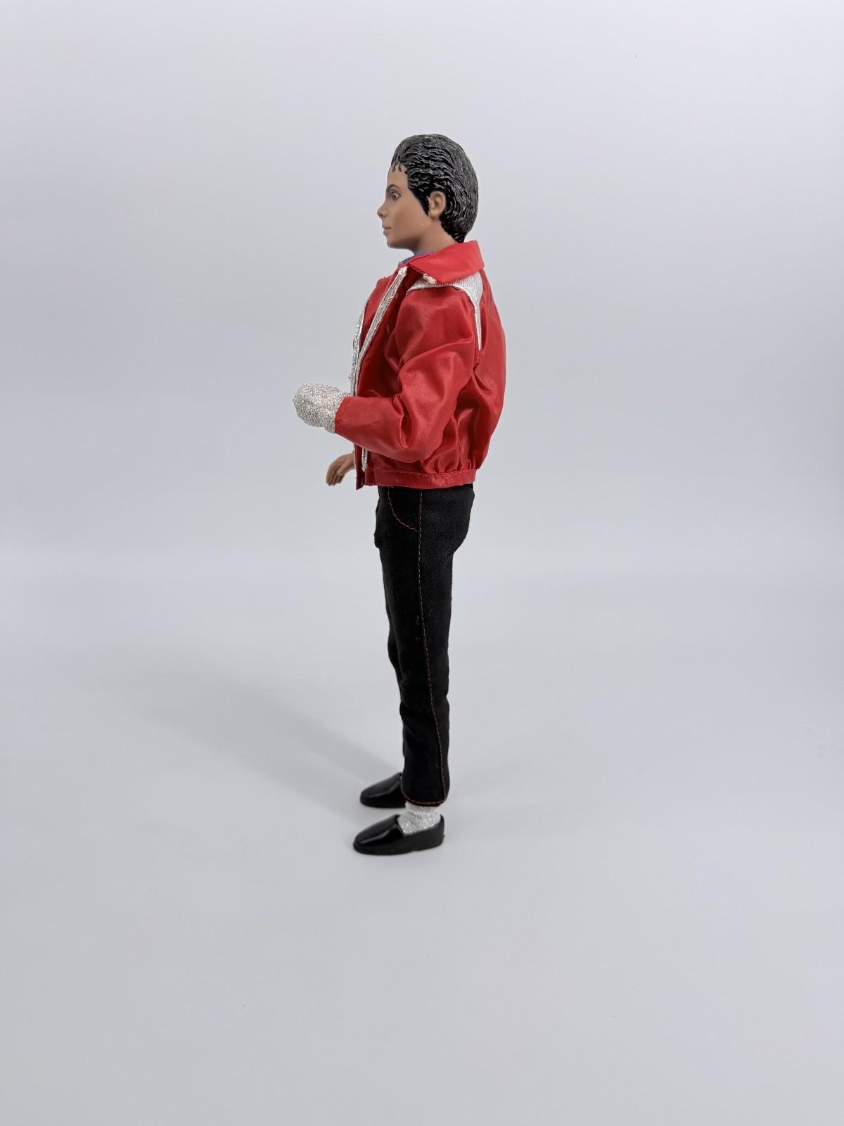 The product is a vintage Michael Jackson doll from MJJ Productions, featuring the iconic Beat It outfit. This collectible item represents the music industry, specifically the rock and pop genre, and is a must-have for fans of the legendary artist. Perfect for music memorabilia collectors and entertainment enthusiasts, this classic figure captures the essence of Michael Jackson's timeless style and talent.