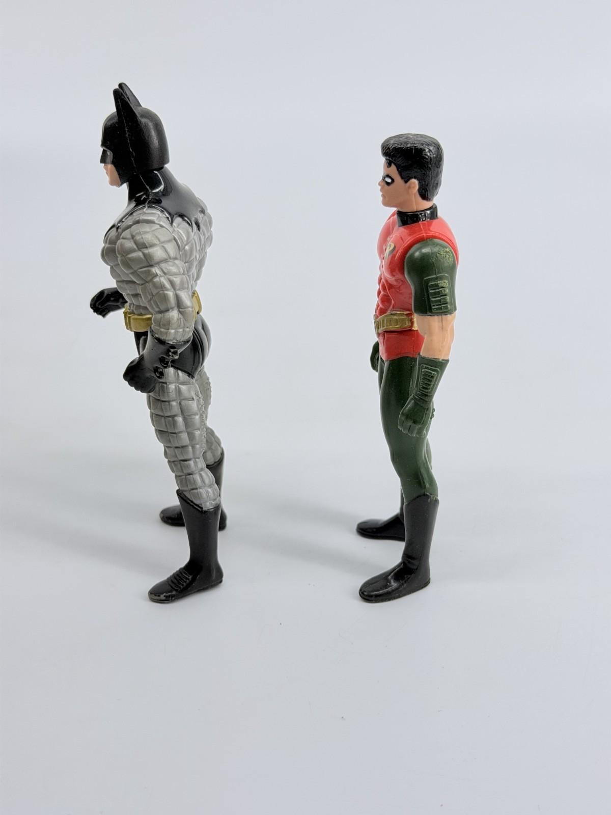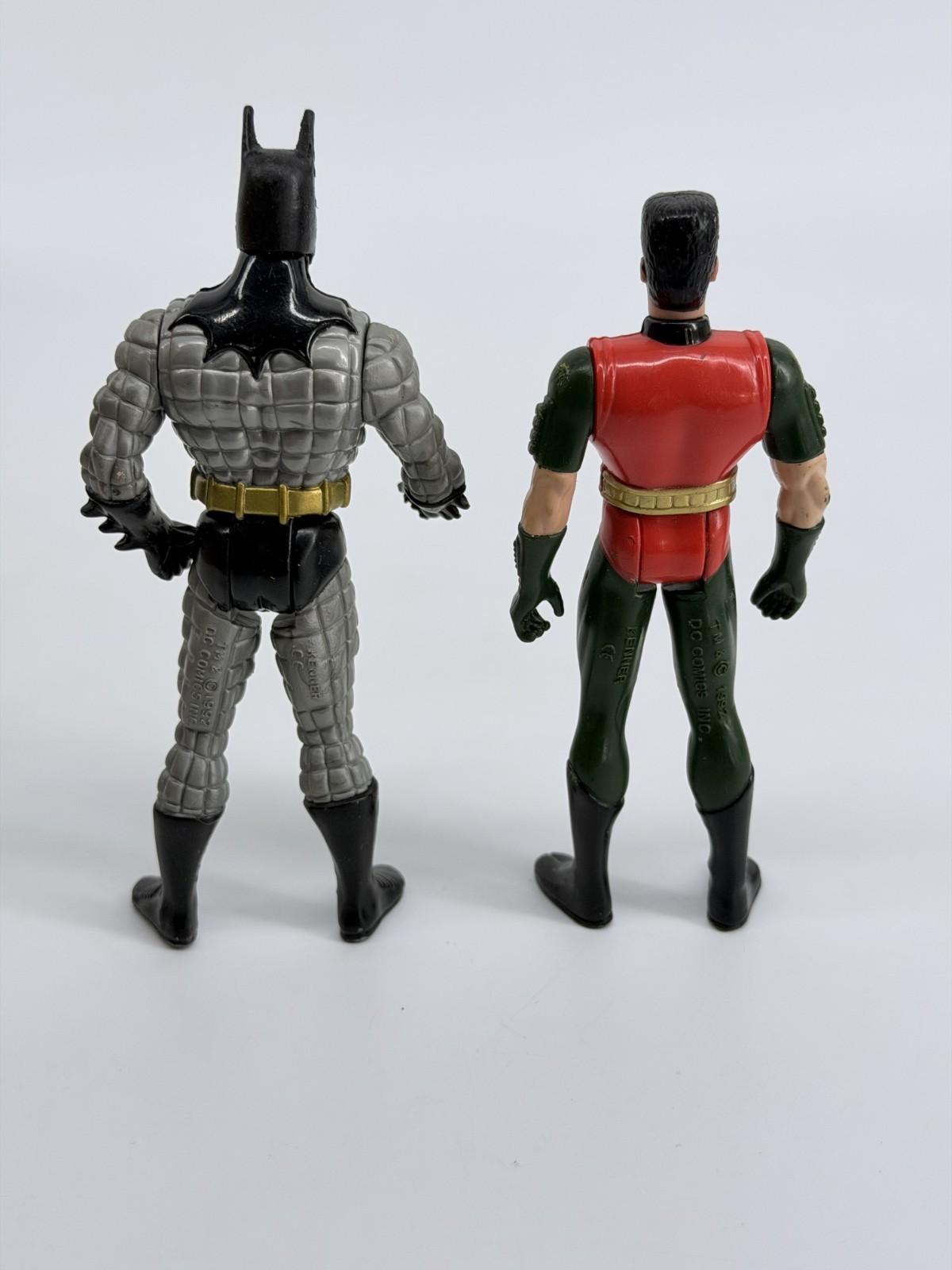 The 1992 Kenner DC Comics Batman Returns Batman and Robin Action Figures are 5-inch plastic toys based on the characters from the movie Batman Returns. These action figures, part of the product line featuring DC Comics characters, were manufactured by Kenner in 1992. Made for boys, these figures showcase the iconic characters Batman and Robin, portrayed by Michael Keaton in the movie. The action figures come without packaging and are a must-have for collectors and fans of the Batman franchise.