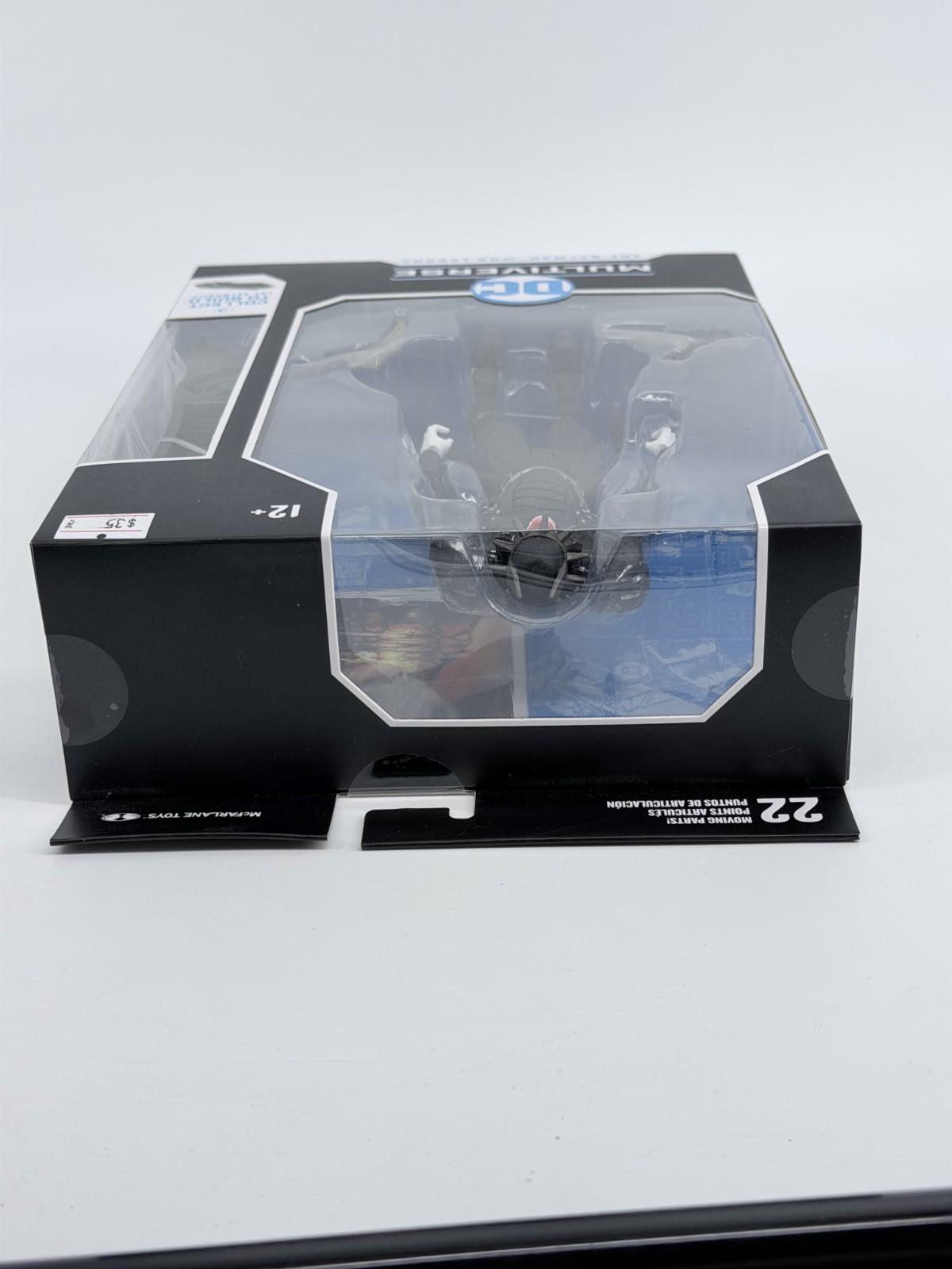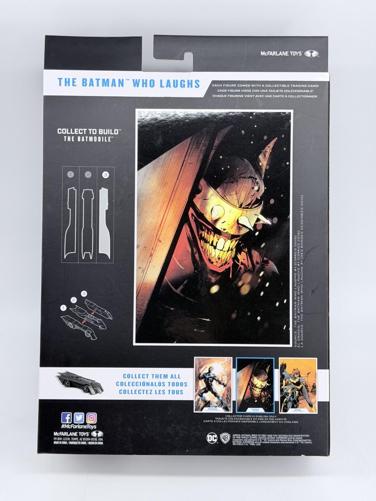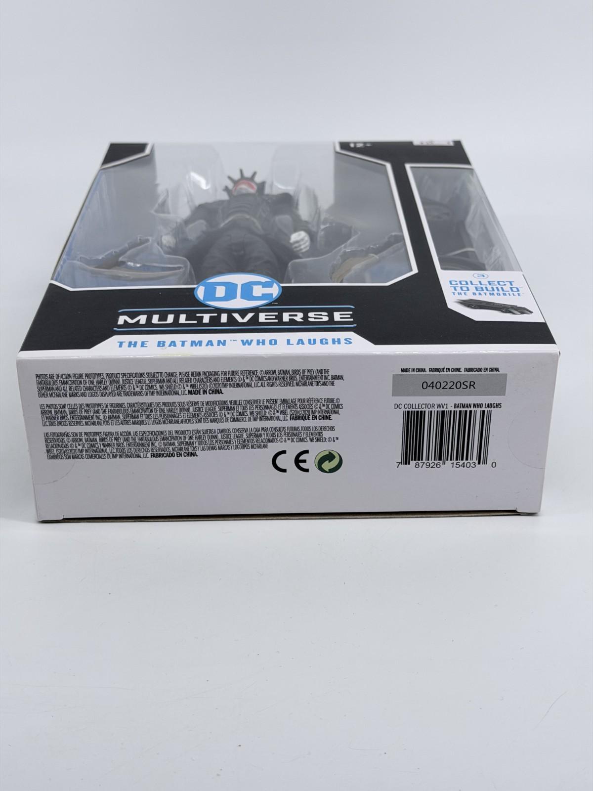 The DC Multiverse 7-inch Action Figure by McFarlane Toys depicts The Batman Who Laughs, a character from the DC Universe franchise. This collectible figure stays true to the character's design from the comic book "The Batman" and the TV show "Batman and Robin." With a scale of 1:10, this action figure stands at 7 inches tall and comes boxed for display. This officially licensed product is a must-have for fans of comic book heroes and DC Universe characters.