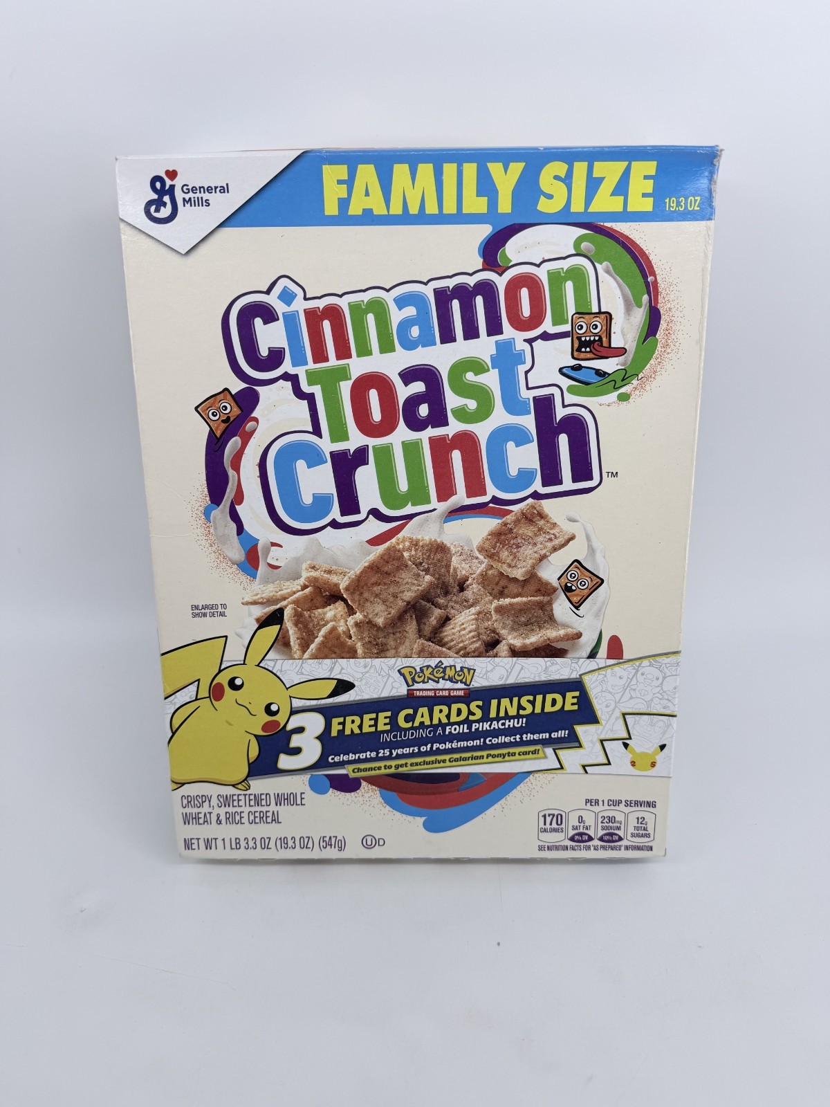 General Mills Cinnamon Toast Crunch Cereal Pokemon 25th Ann Box With Cards - New