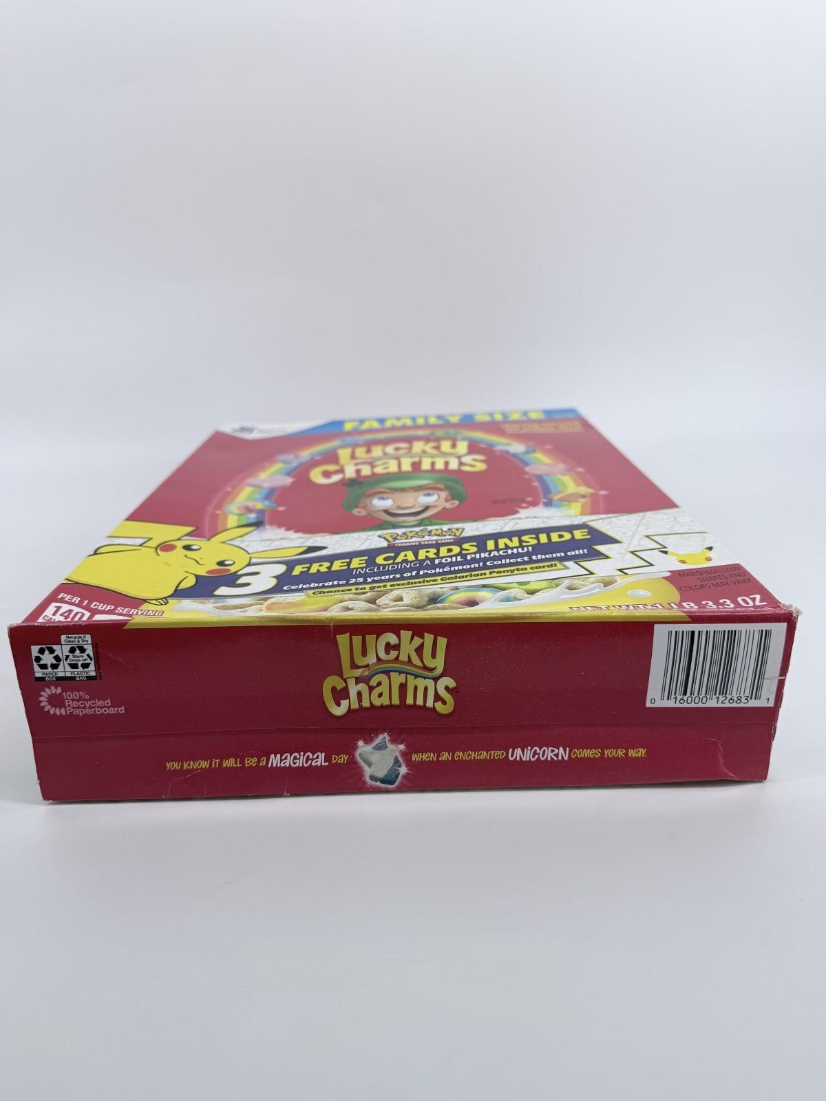 General Mills Lucky Charms Cereal Pokemon 25th Anniversary Box With Cards - New