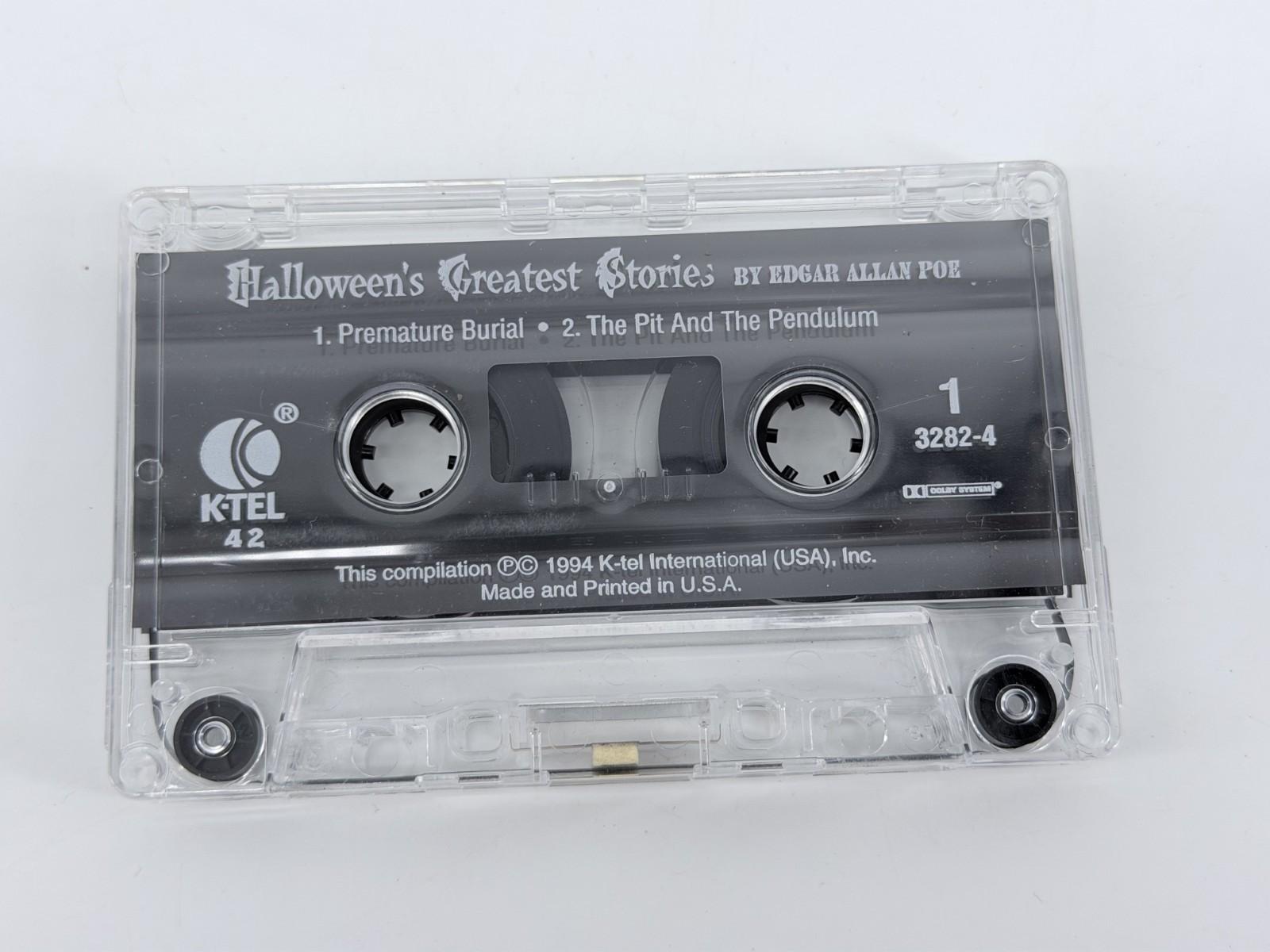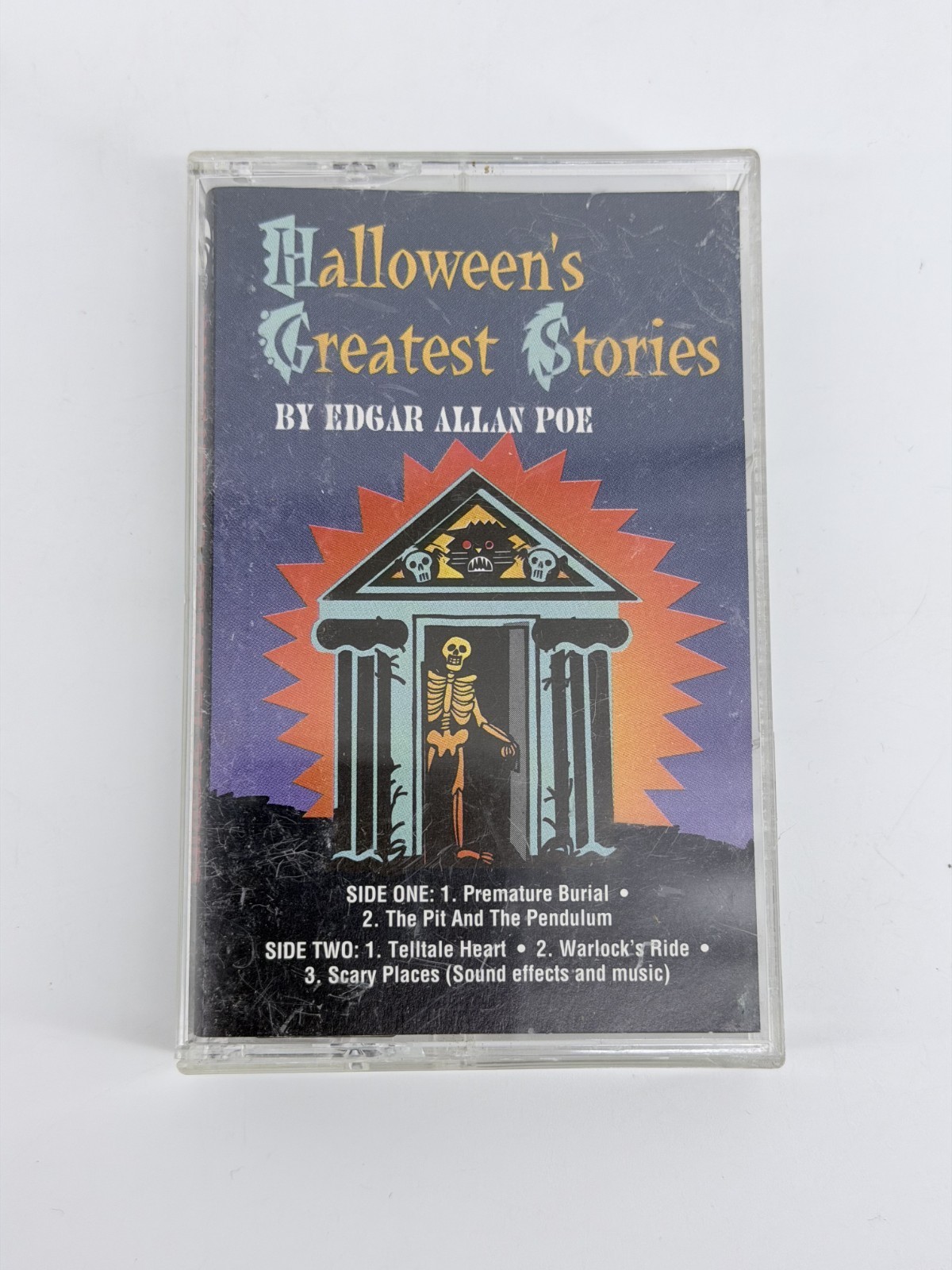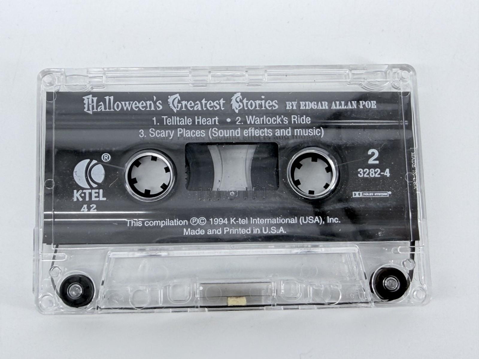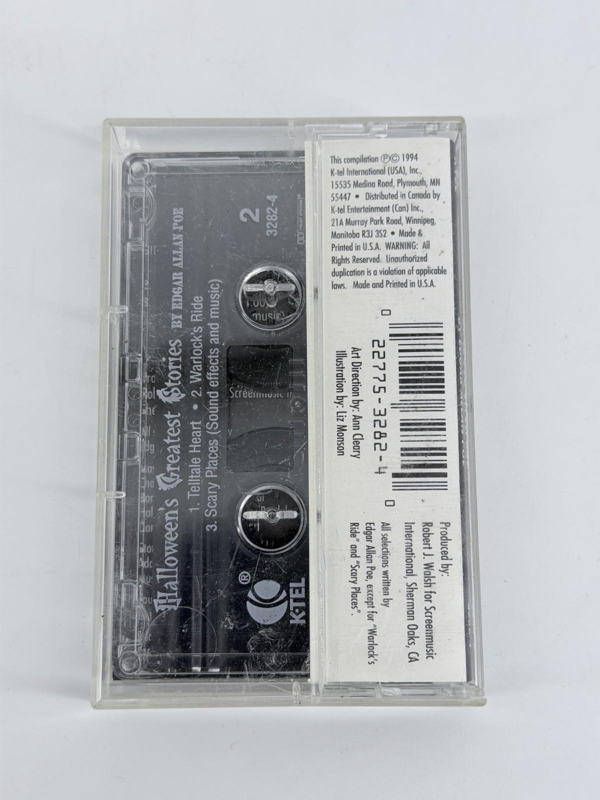 The "Halloween's Greatest Stories by Edgar Allan Poe" cassette, released in 1994 by K-Tel Distribution, features a collection of spooky and thrilling tales read by artist Robert J. Walsh. With a run time of 47 minutes, this cassette offers a captivating listening experience filled with the eerie and imaginative storytelling style of Edgar Allan Poe, perfect for the Halloween season.