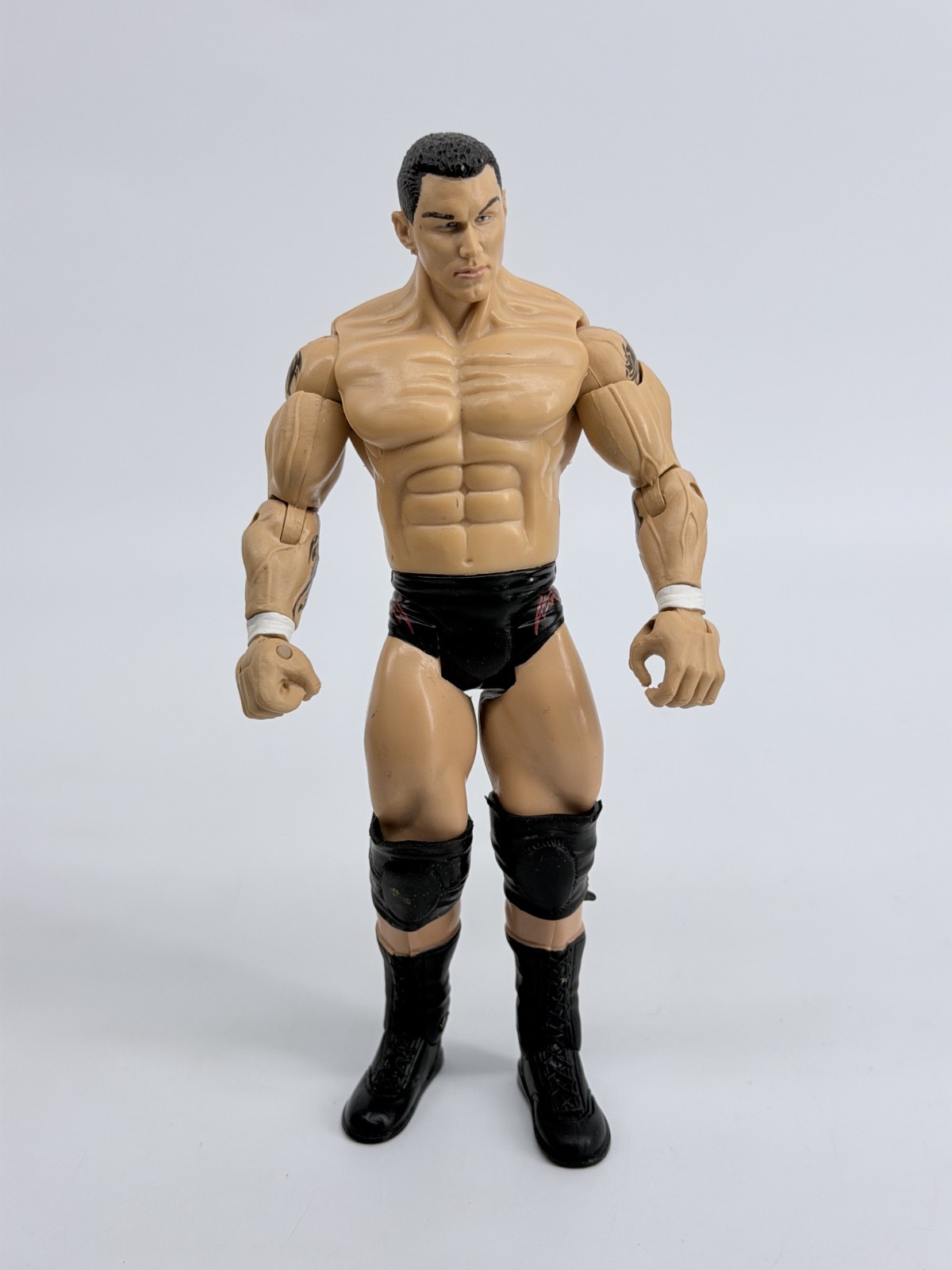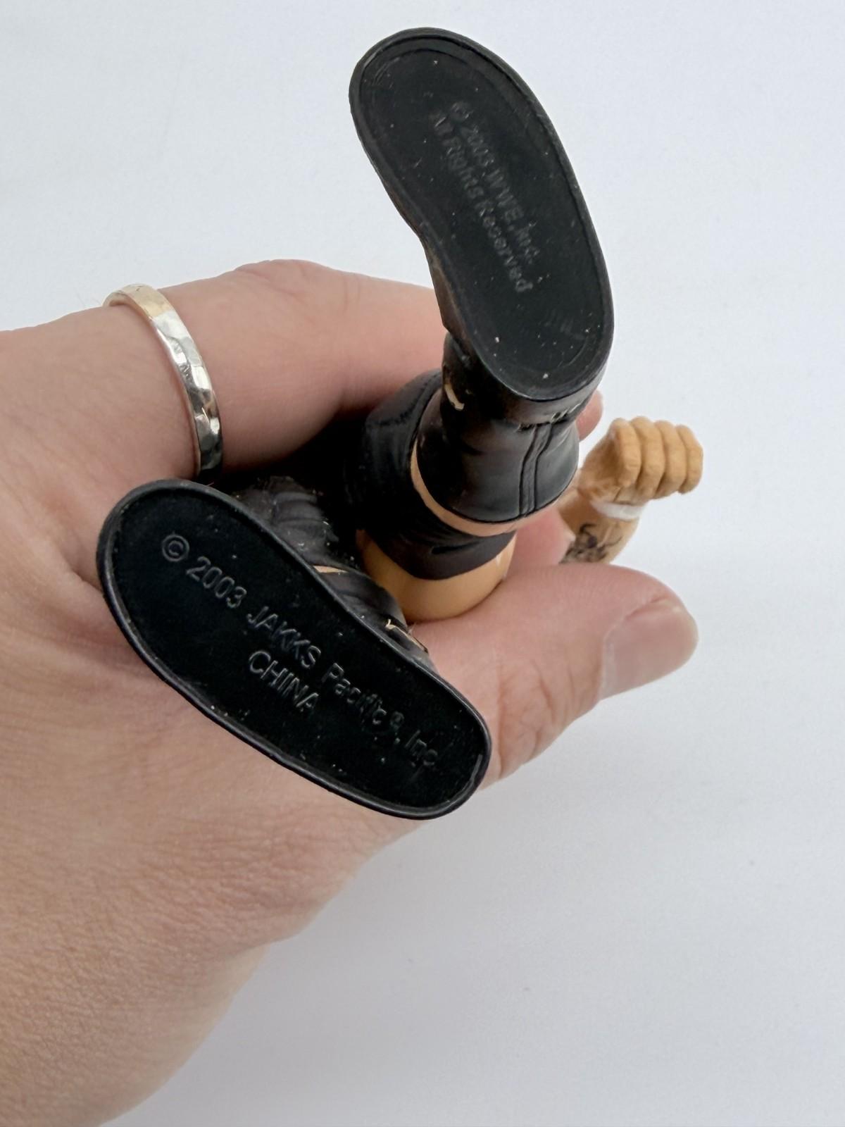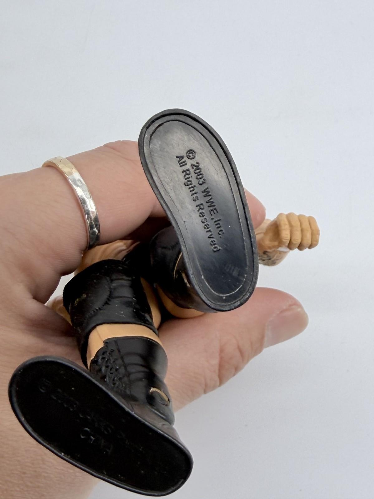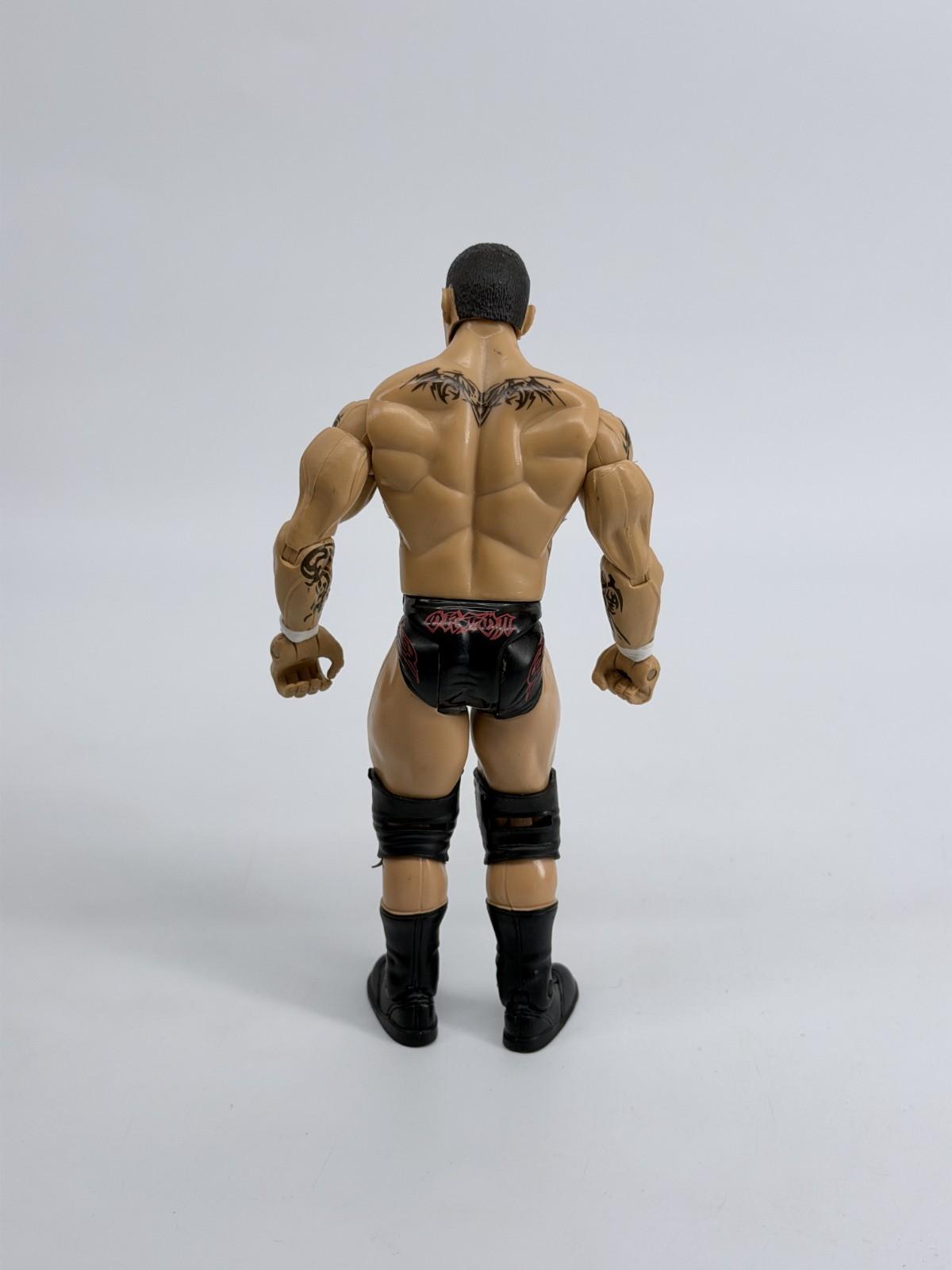 The Jakks WWE 2003 Randy Orton Wrestling Figure is a 7-inch action figure representing the popular WWE character Randy Orton. Manufactured by JAKKS Pacific in 2003, this collectible toy is part of the WWE franchise and is designed to resemble the wrestling superstar. Perfect for fans of wrestling and action figures, this item is a must-have for collectors looking to add a piece of wrestling history to their collection.