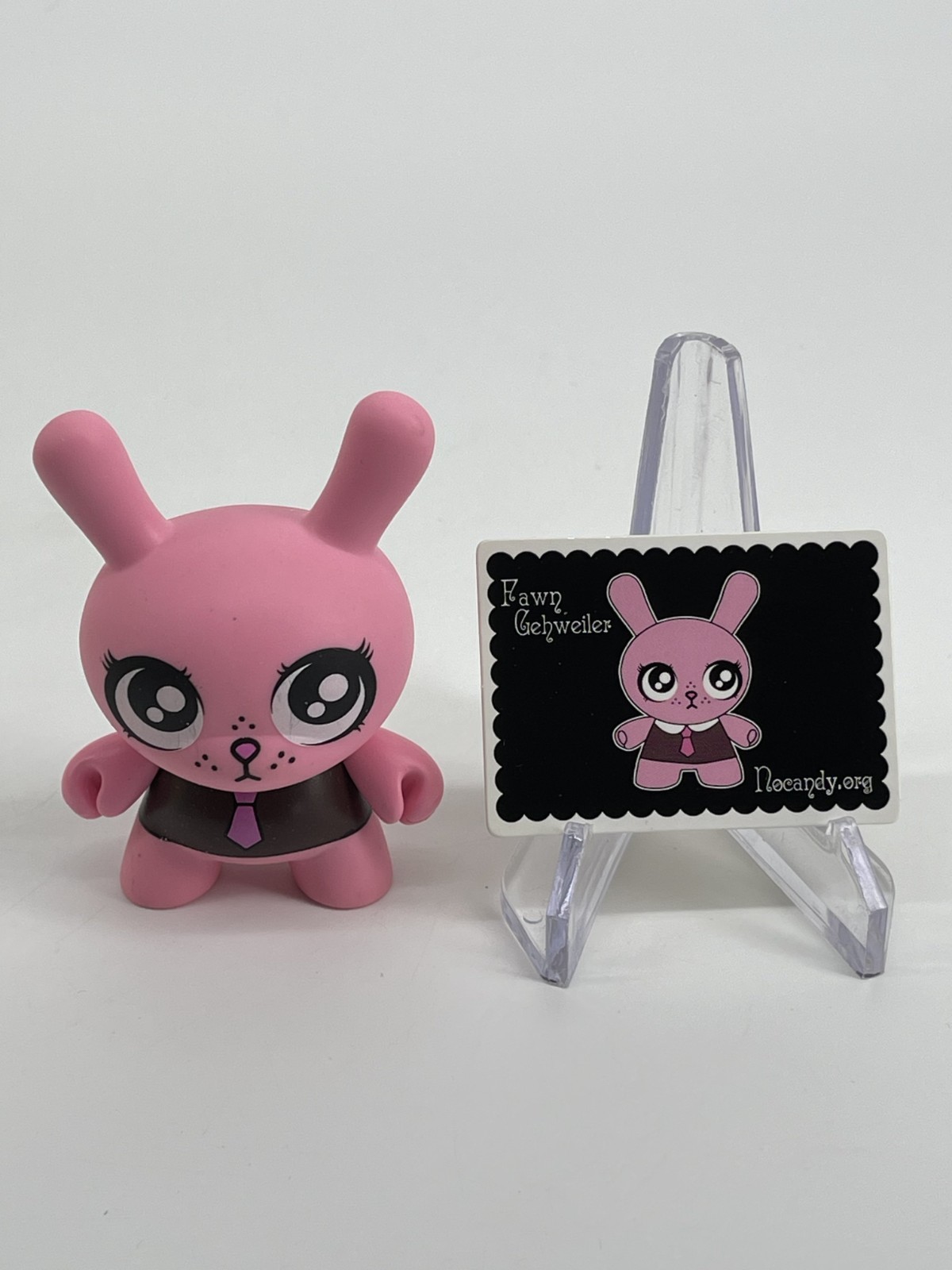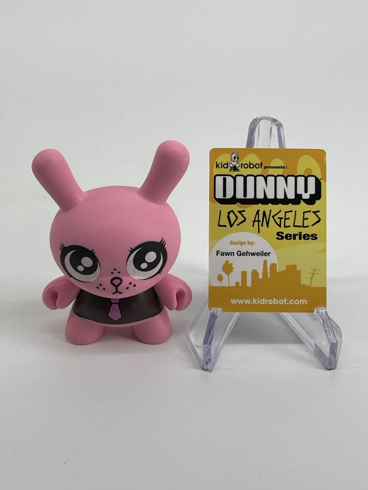 The Kidrobot Dunny Los Angeles Fawn Gehweiler Designer 3" Inch Figure is a collectible action figure featuring the character Fawn Gehweiler in a pink color. Packaged in its original packaging, this toy is part of the Dunny character family and is a must-have for fans of the Kidrobot brand. Standing at 3 inches tall, this detailed figure is sure to be a standout in any collection.