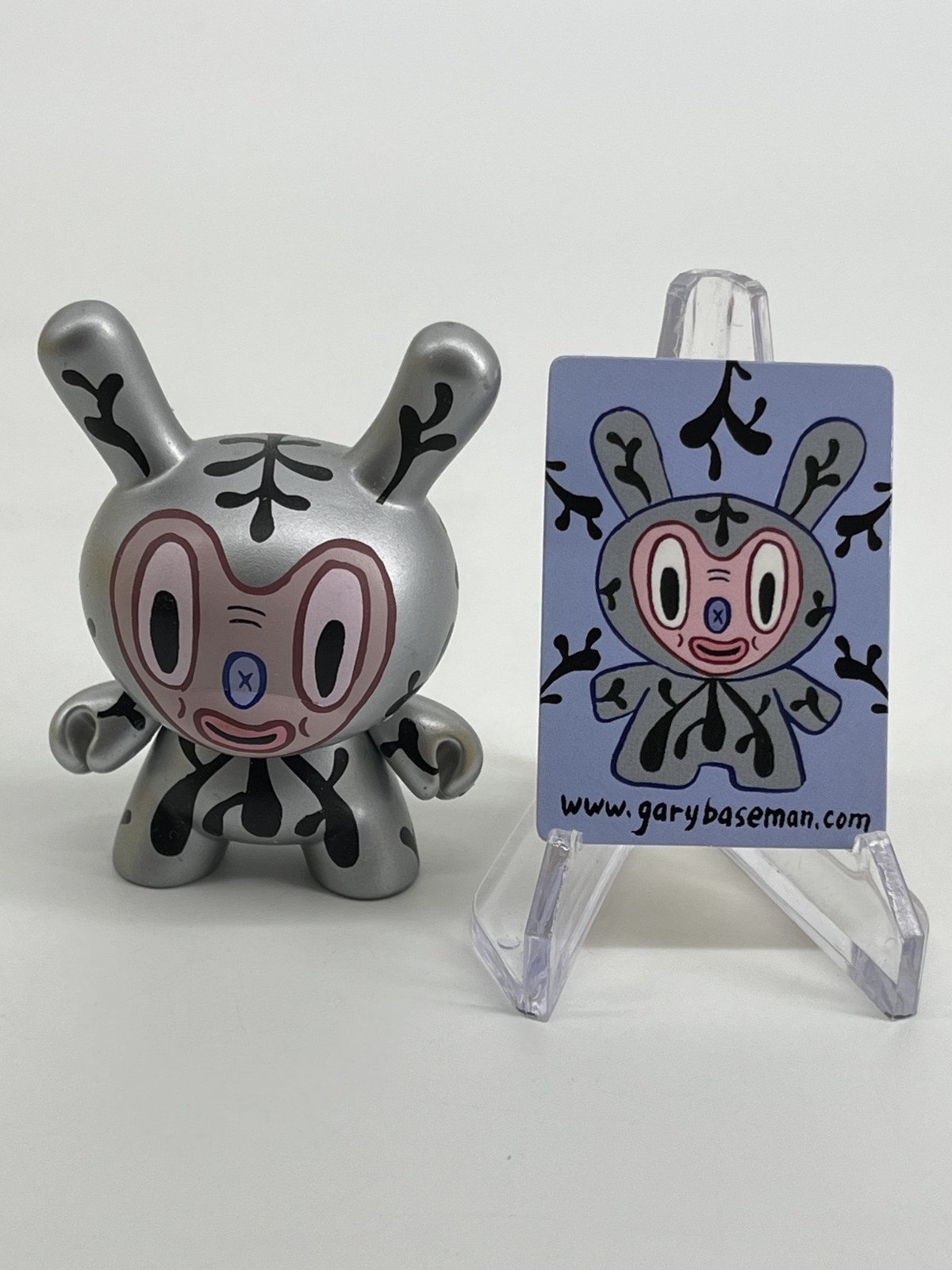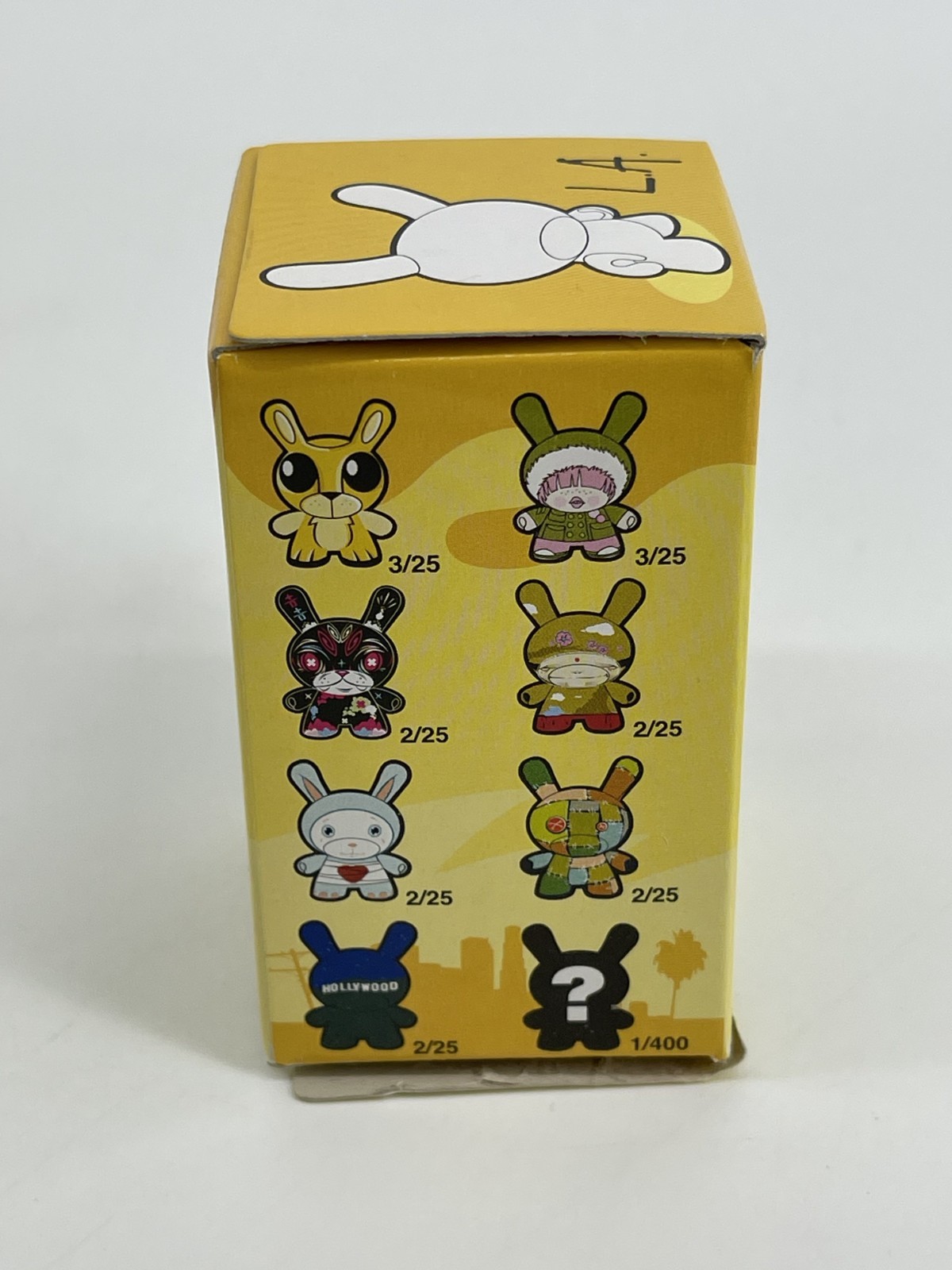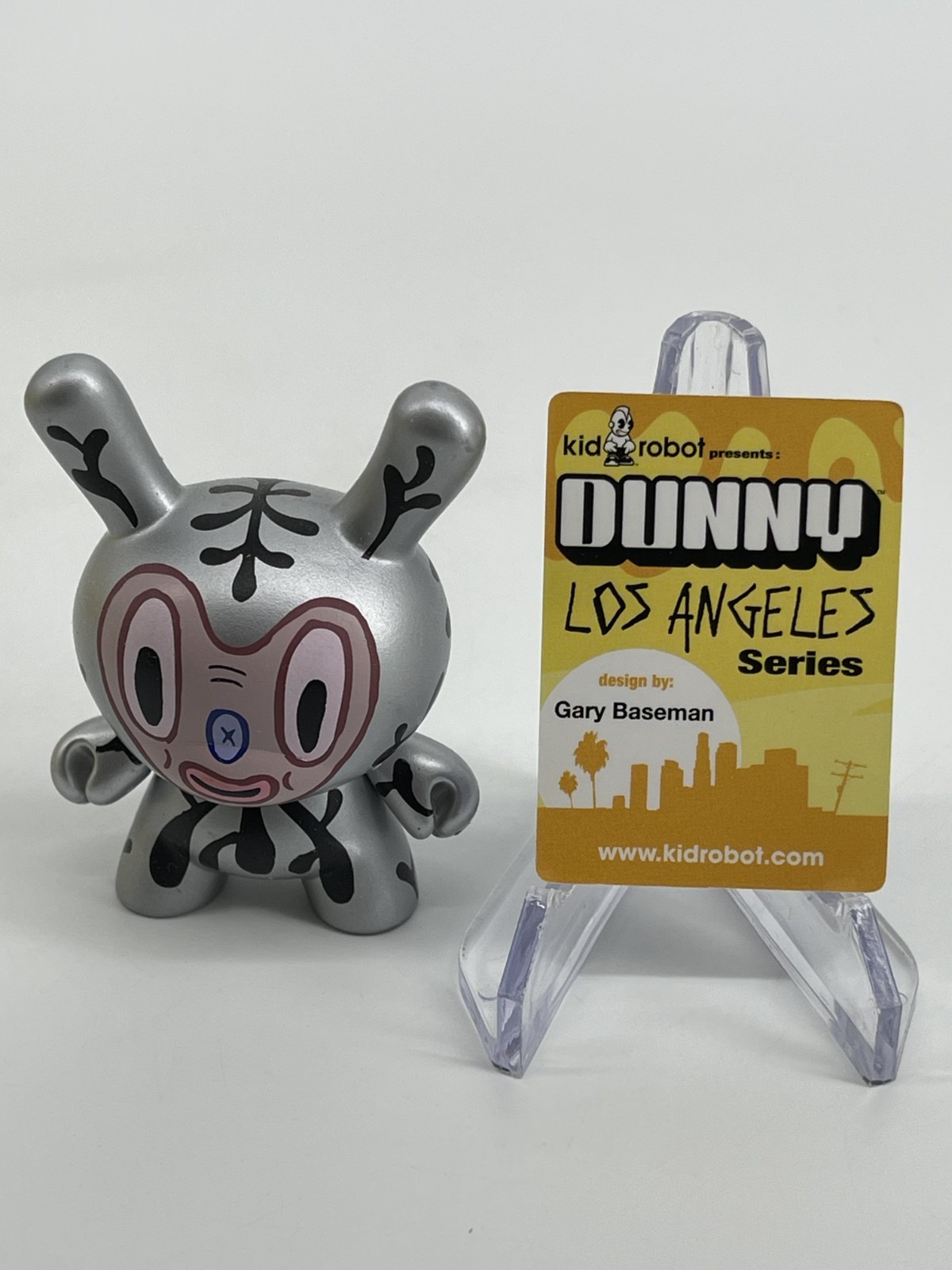 The Kidrobot Dunny Los Angeles Gary Baseman Designer 3" inch figure is a collectible action figure featuring a rabbit character from the Dunny family. This figure is part of the Designer & Urban Vinyl theme and comes in its original packaging. Created by contemporary artist Gary Baseman, this toy is a unique addition to any action figure collection, offering a creative and urban design aesthetic. Perfect for fans of street art and limited edition vinyl toys.