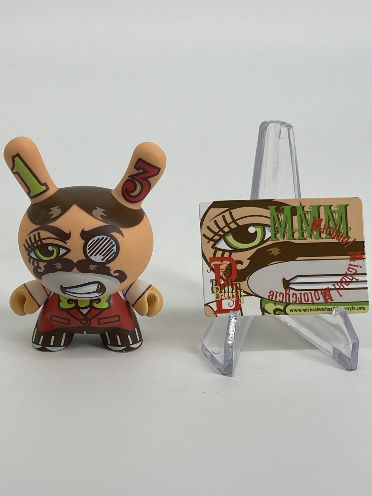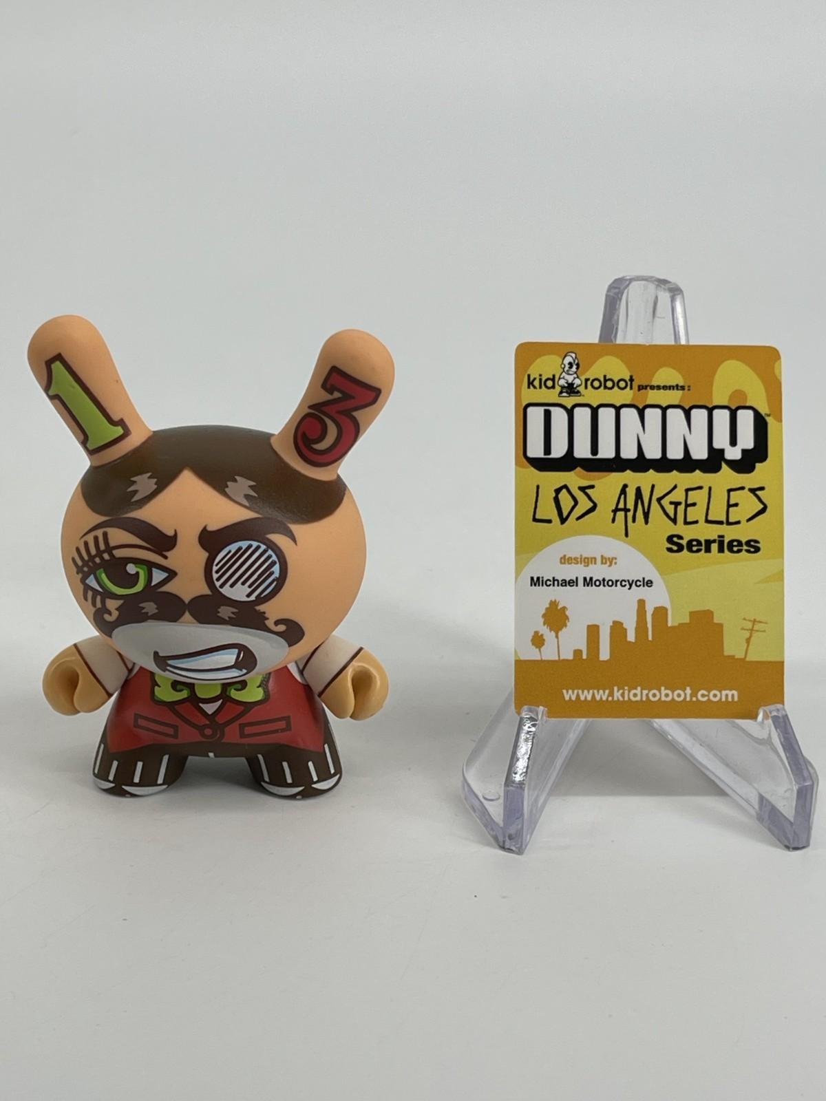 The Kidrobot Dunny Los Angeles Michael Motorcycle Designer 3" figure is a collectible action figure featuring a unique character from the Dunny family. With a size of 3 inches, this figure is part of the Designer & Urban Vinyl theme, showcasing a rabbit character in an original packaging. Created by Kidrobot, this toy is perfect for fans of action figures and urban vinyl art. Perfect for display and imaginative play, this figure is a must-have for collectors and enthusiasts alike.