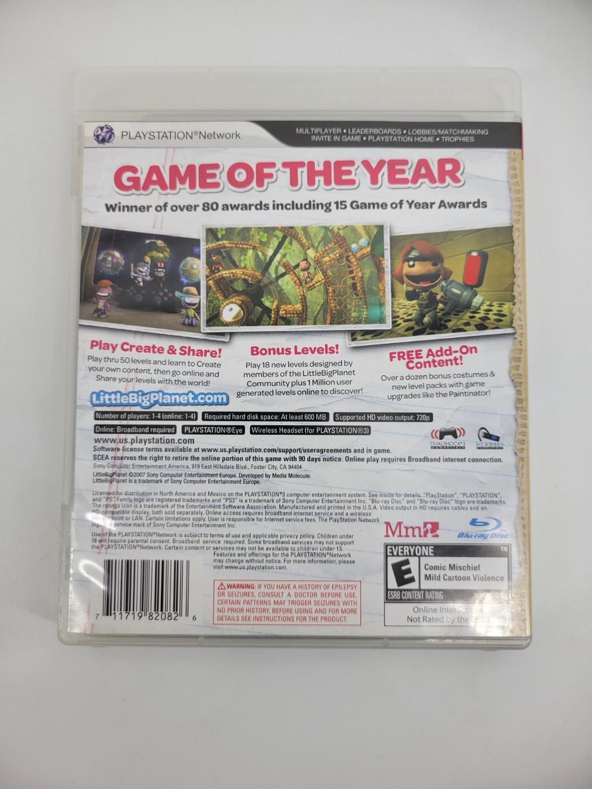 The Little Big Planet - Game of the Year Edition for PlayStation 3 is a complete and tested video game that offers players the chance to create and share their own levels in a fun and interactive gameplay experience. Developed by Sony Computer Entertainment, this action and adventure game is part of the popular Littlebigplanet series and is suitable for all ages with an E rating. With a 3-year manufacturer warranty, this edition includes special features that make it a must-have for fans of the game.