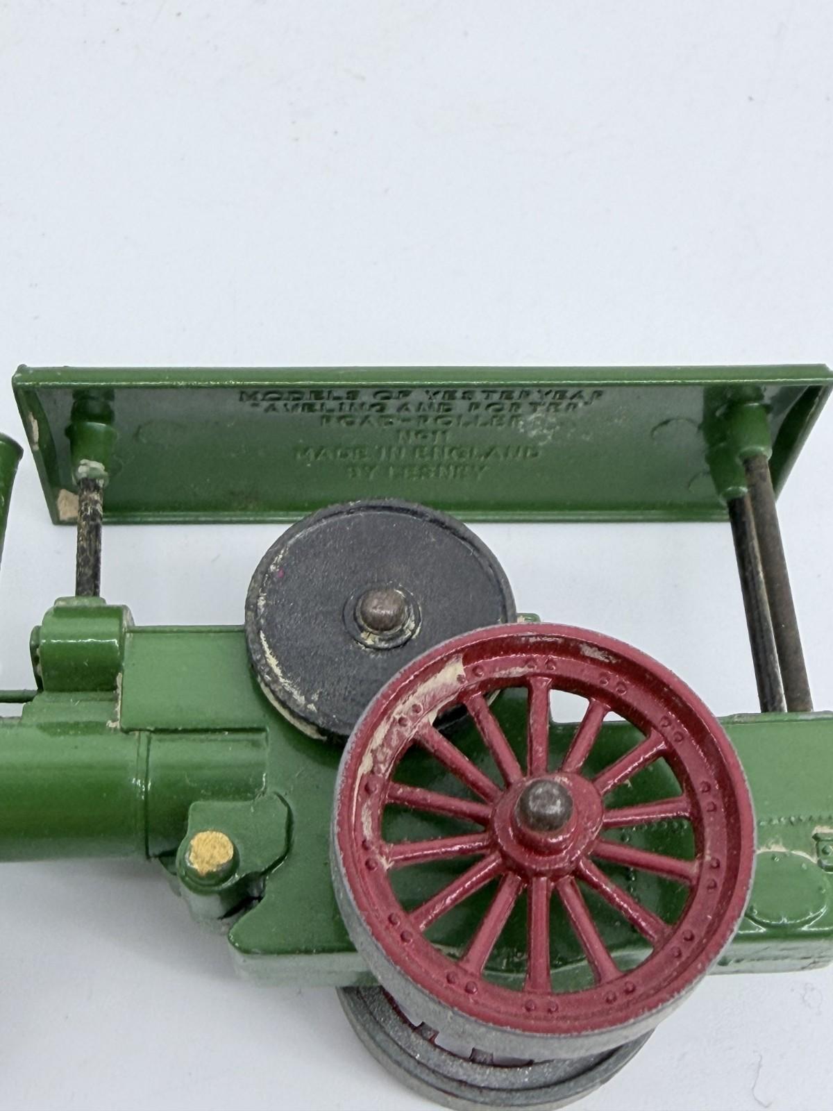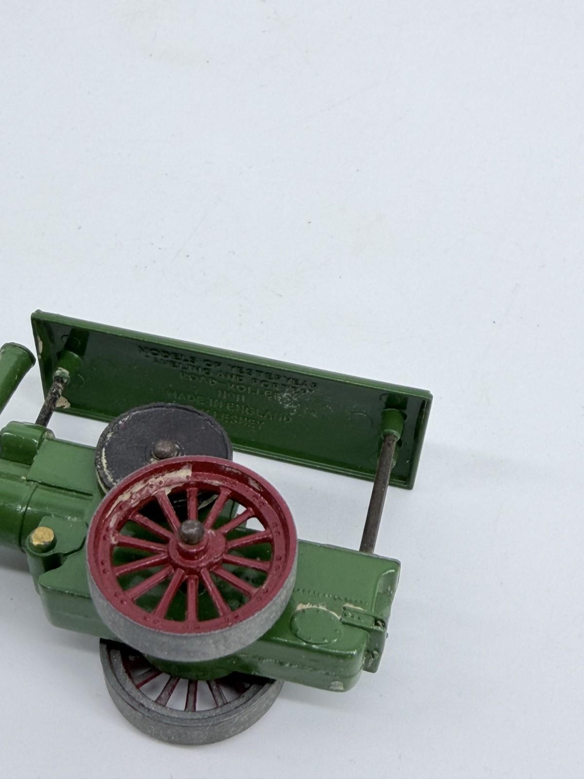 The Matchbox Models of Yesteryear by Lesney Aveling and Porter Road Roller No. 11 is a vintage diecast toy vehicle in green color. This collectible item is part of the Matchbox Y-11a model series, known for its detailed craftsmanship and nostalgic design. Perfect for toy and hobby enthusiasts, this classic piece represents a piece of automotive history and is a valuable addition to any vintage toy collection.
