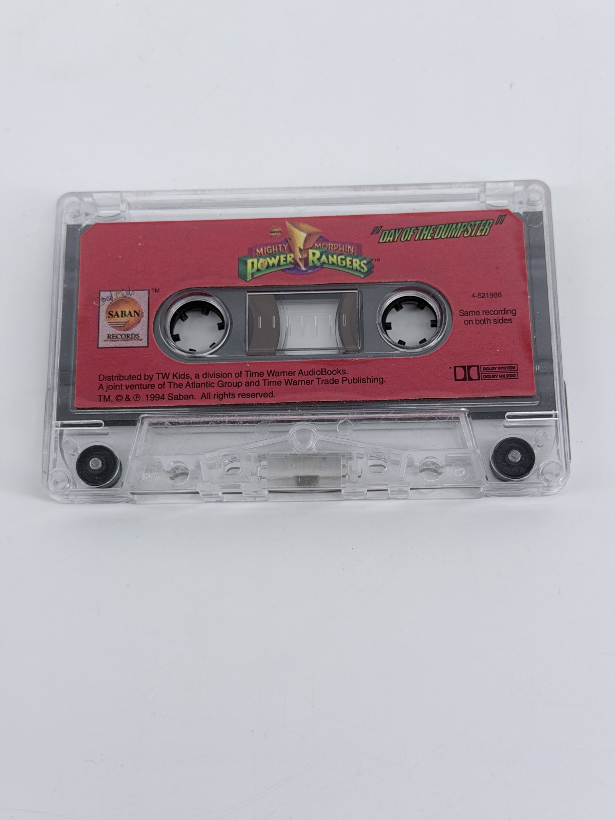 The Mighty Morphin Power Rangers: Day Of The Dumpster cassette tape from 1994 features music by Power Rangers and was released by Warner Elektra Atlantic Corp. The colorful cassette, with a vibrant multicolor design, is in good condition and is a vintage collectible for fans of the popular animated series. This nostalgic piece of music history allows listeners to transport themselves back to the 90s with the iconic sounds of the Power Rangers.