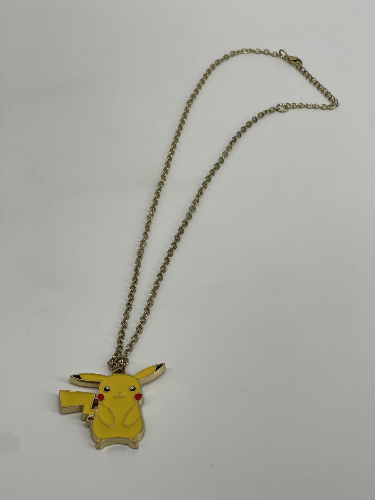 The Pokemon Pikachu Necklace is a collectible accessory featuring a metal design inspired by the popular Japanese anime and manga franchise, Pokemon. This necklace, made in Japan, showcases the iconic Pikachu character from the TV show, making it a must-have piece for fans of the series. Perfect for cosplay or everyday wear, this necklace is a cute and unique way to show off your love for the Pokemon universe.