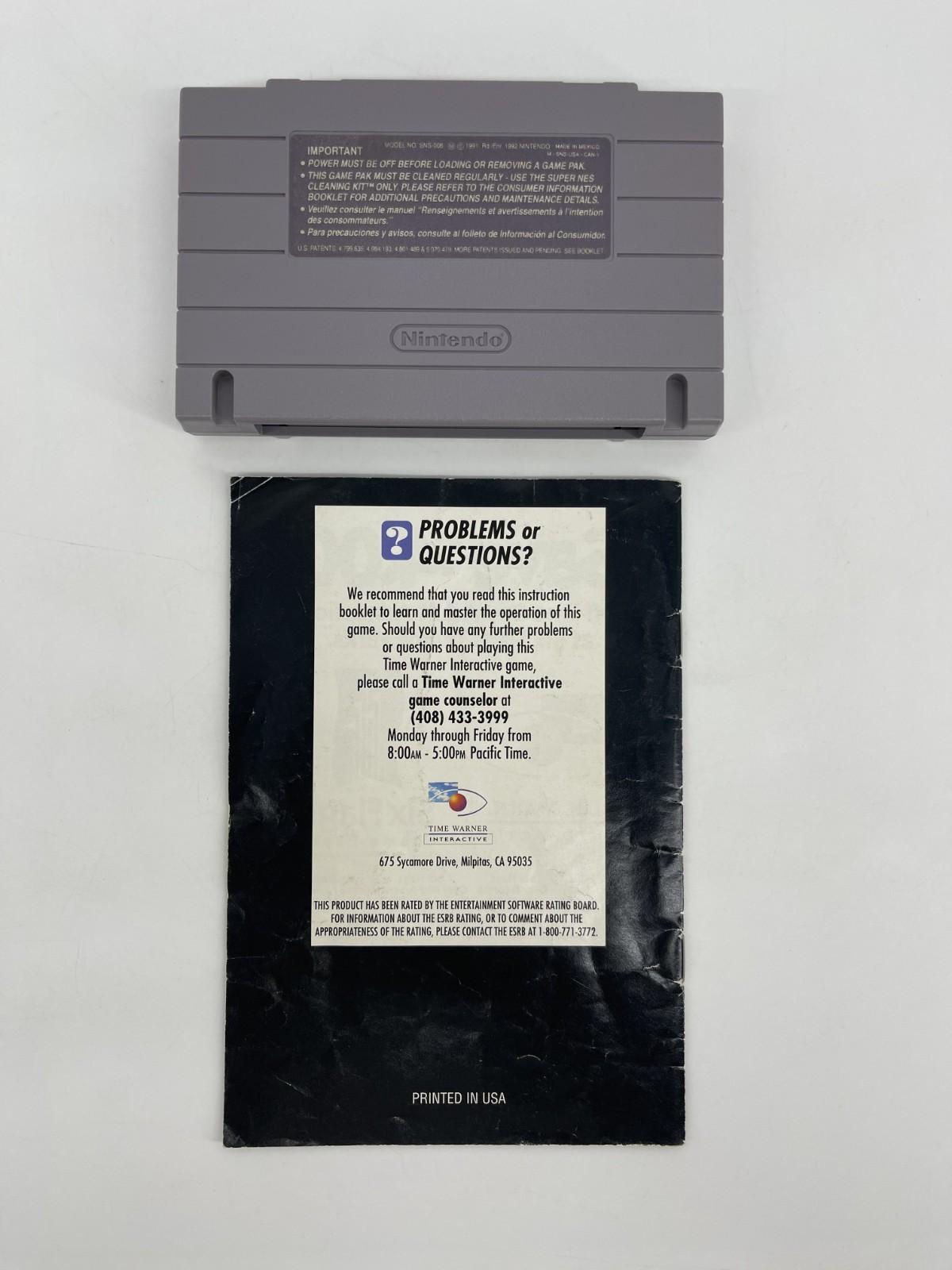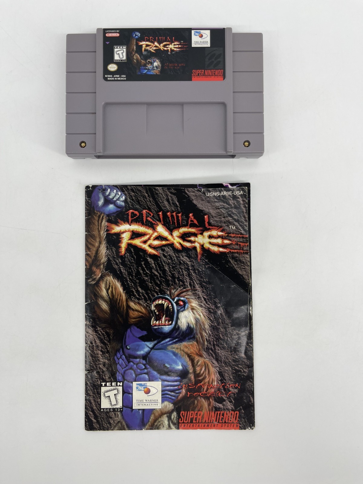 The product is a tested cartridge of the video game "Primal Rage" for the Super Nintendo SNES console, released in 1995. The game falls under the genre of fighting games and has a Teen rating. Published by Time Warner Interactive, the NTSC-U/C (US/Canada) region coded game offers an exciting gaming experience for fans of the genre on the classic Super Nintendo platform.