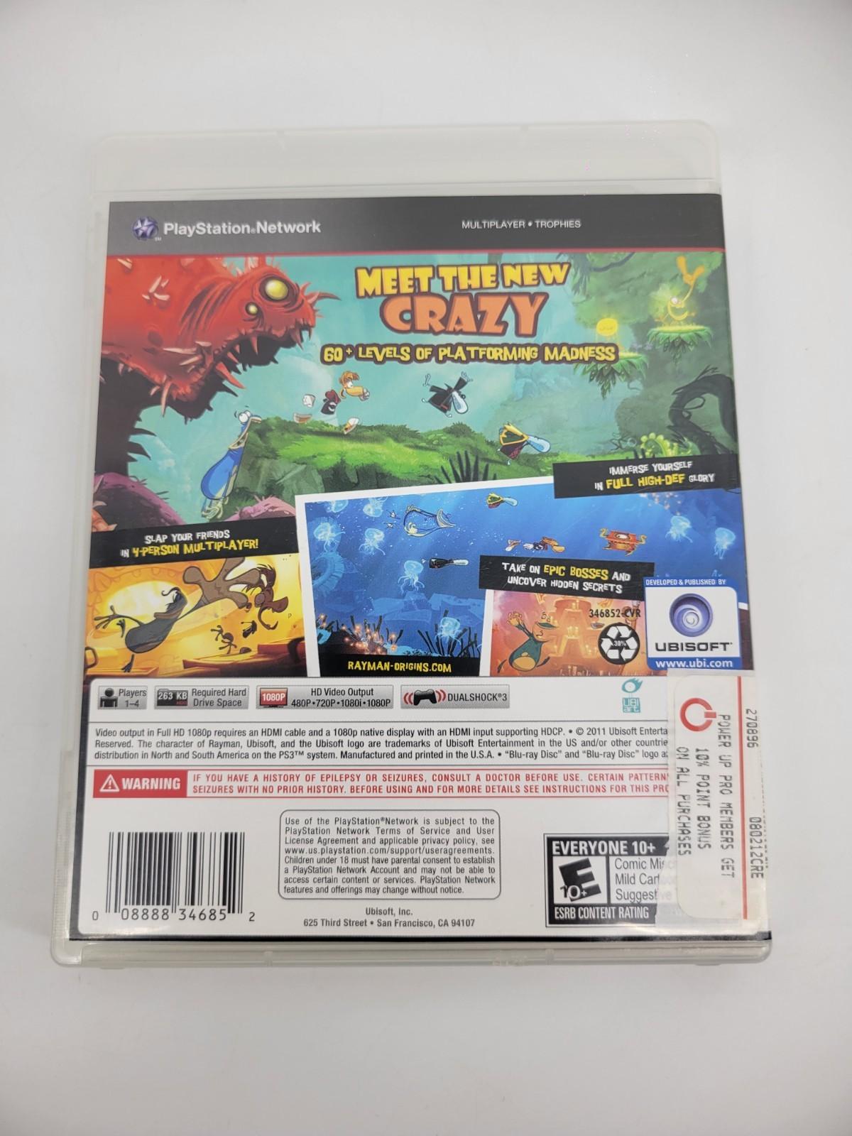 The product is a complete and used copy of the video game "Rayman Origins" for the Sony PlayStation 3, released in 2011. Published by Ubisoft, this action-adventure game is part of the Rayman Series and is rated E10+ for Everyone 10 and older. The game features comic mischievous and mild cartoon violence, along with suggestive themes. With 1-4 players, this game offers an immersive experience for fans of the genre, utilizing gamepad/joystick control elements for an engaging gameplay.