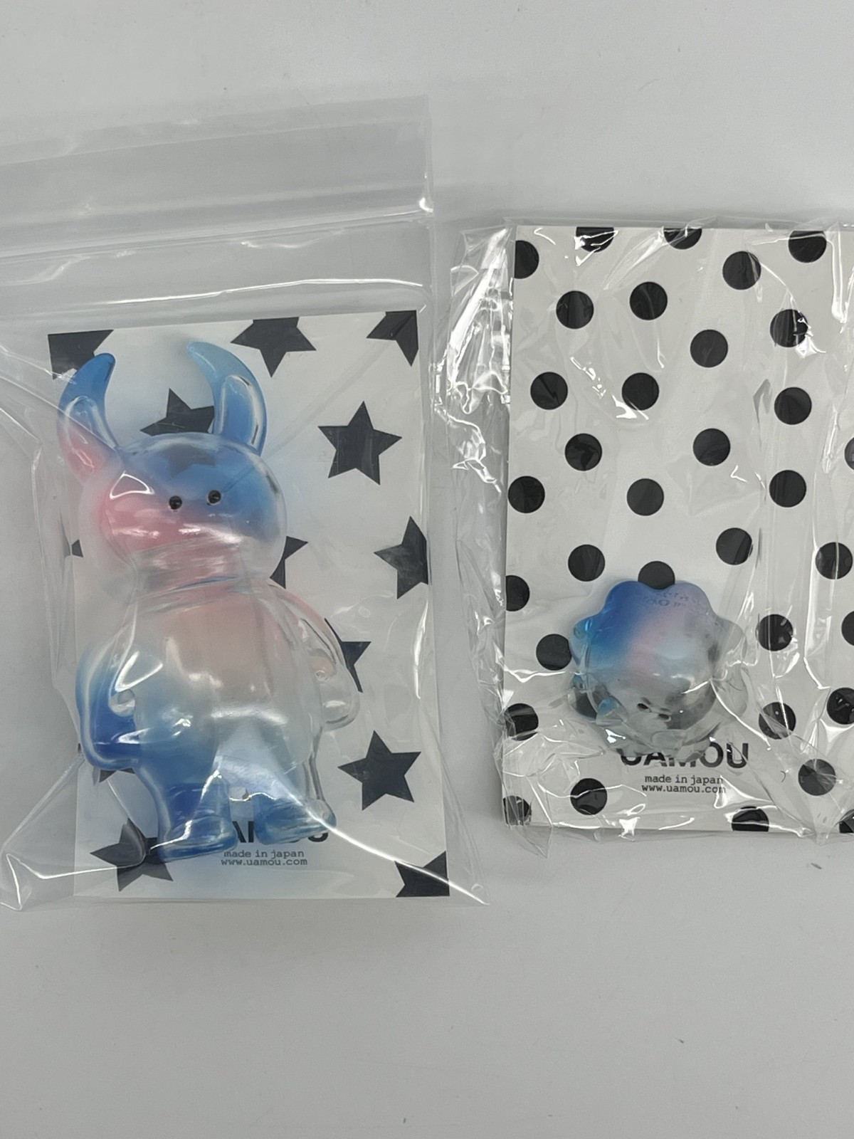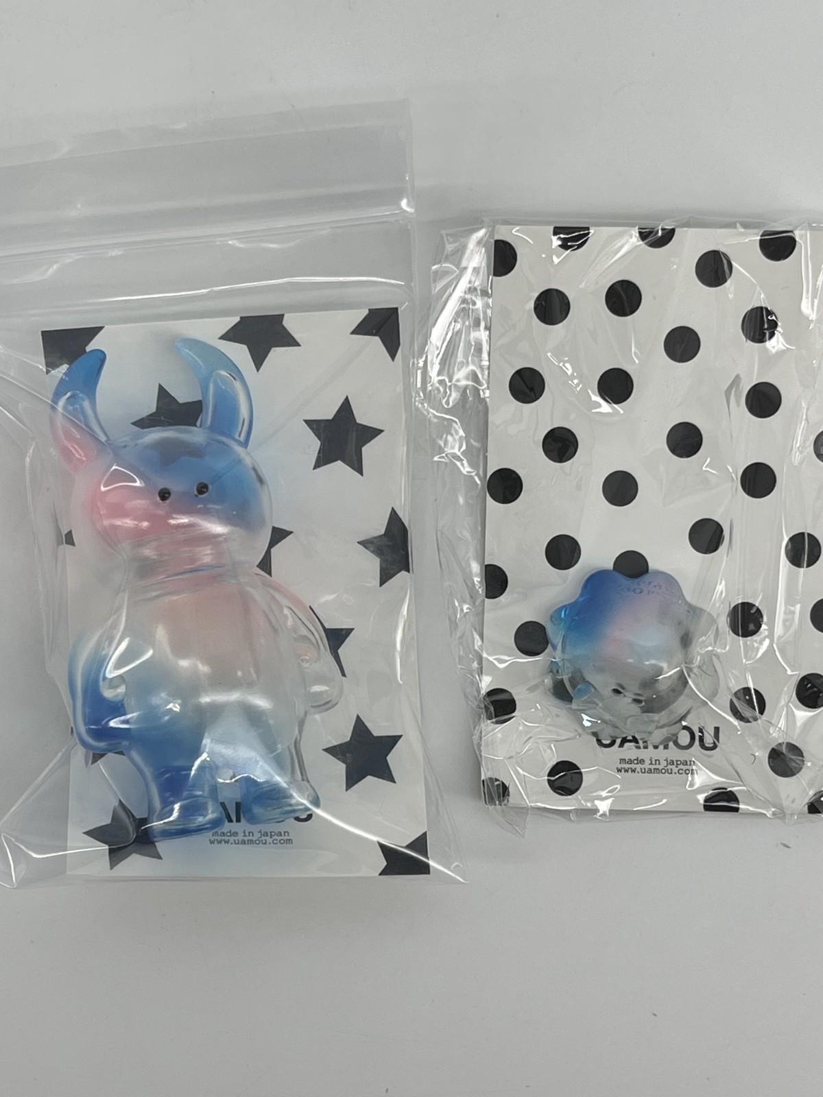 The Uamou Sofubi by Ayako Takagi Monster Angled & Boo is a limited edition designer toy featuring characters Boo, Happy, sad, and surprised in pastel blue to pink colors. This 1:24 scale vinyl toy was manufactured in 2010 as part of the Uamou pop-up shop series. With an original design by Ayako Takagi, this collectible item captures the essence of designer and urban vinyl art, making it a unique addition to any toy collection.